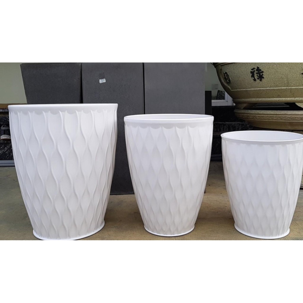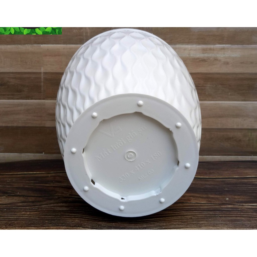 CHẬU MẮT LƯỚI TRÒN GIẢ SỨ TRẮNG 21X18cm ML03❌Chậu nhựa tròn mắt lưới có các đường vân sóng giả sứ kiểu dáng đẹp,độc lạ