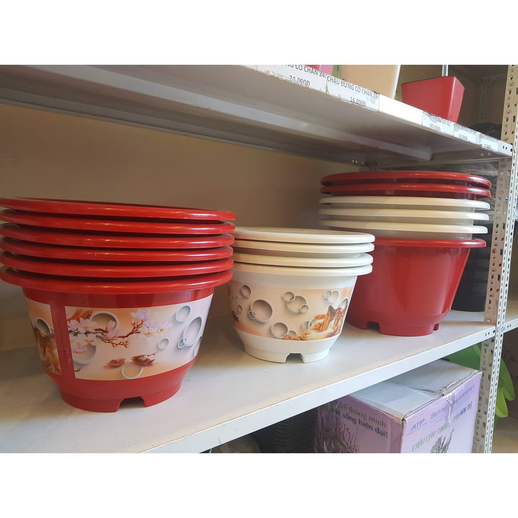 - Chậu miệng loe, màu đỏ, KT 46x25x27 Họa tiết bắt mắt . Dễ di chuyển