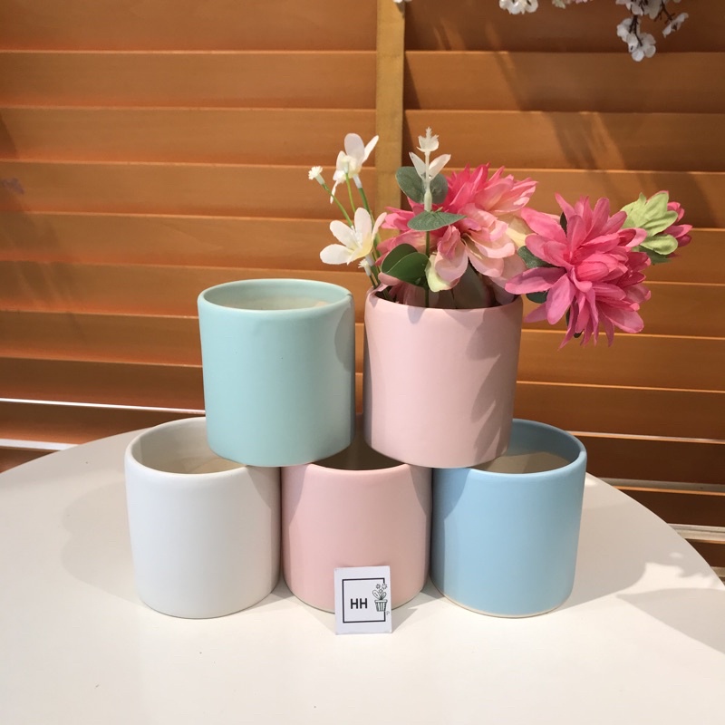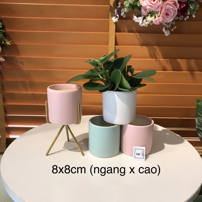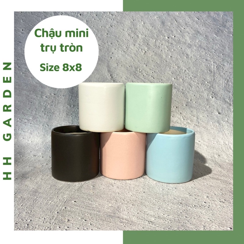Chậu gốm sứ trồng cây mini 8x8cm hình trụ tròn. Thích hợp trồng cây cỡ nhỏ như sen đá, xương rồng, cẩm nhung, cau tiểu trâm,... Chậu tráng men mát, màu sắc đẹp, dày dặn.Xuất xứ: Việt Nam