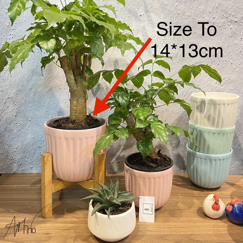 Giới thiệu Chậu Mochi kẻ sọc, Size to 14*13cm, chậu trồng cây để bàn gốm sứ Bát Tràng