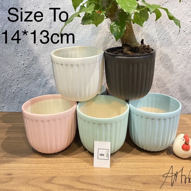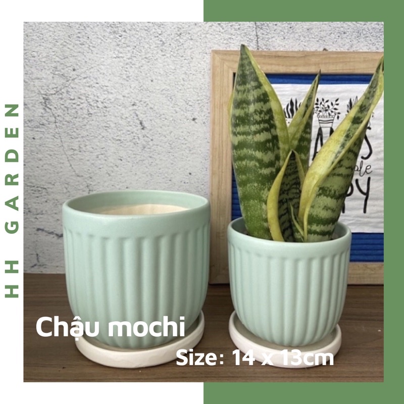 Nhà cửa & Đời sống > Làm vườn > Chậu cây || Chậu Mochi kẻ sọc, Size to 14*13cm, chậu trồng cây để bàn gốm sứ Bát TràngCòn hàng