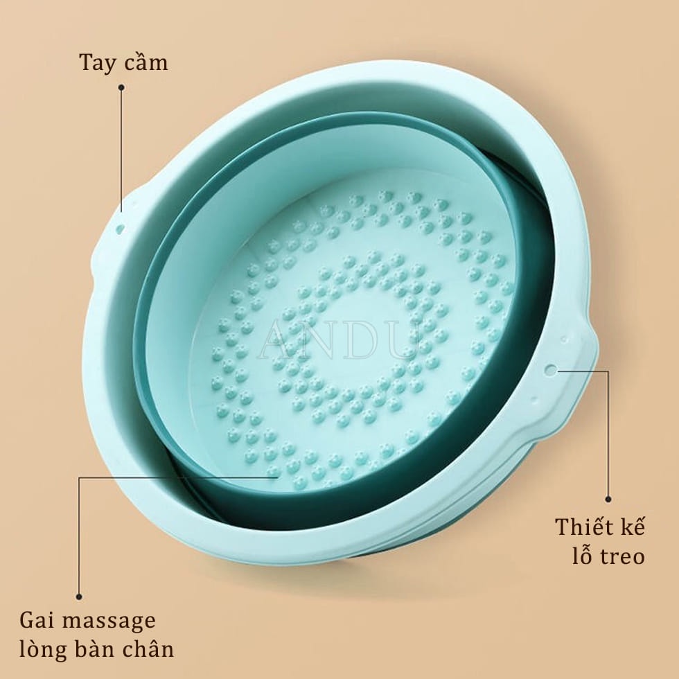Giới thiệu Chậu Ngâm Chân Gấp Gọn Hình Tròn Không Nắp Silicon Massage Chân Thư Giãn Size To Thau Gấp Gọn Thông Minh