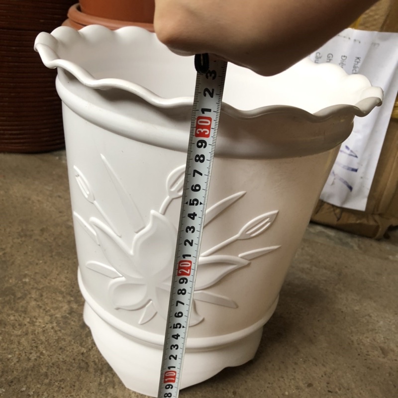 Thành chậu khá dày dặn, chịu lực tốt, cứng cáp; kiểu dáng, màu sắc trông rất giống các loại chậu sứ men trắng. Nếu bạn thích các mẫu chậu trồng cây bằng sứ nhưng không gian ngôi nhà khá hạn chế, khó vận chuyển, bạn có thể sử dụng loại chậu này để thay thế mà vẫn đảm bảo yếu tố thẩm mỹ cho không gian.