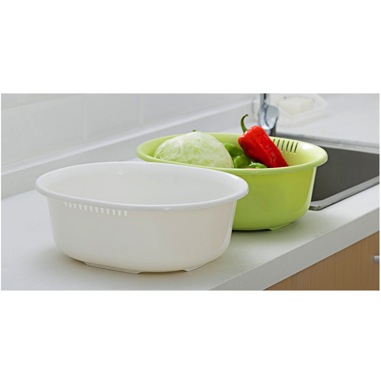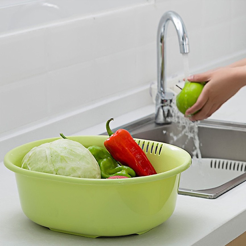 Công dụng: Đựng rau, hoa quả …Phẩn rổ hai bên thiết kế có thể cầm nắm dễ dàng. Chậu vừa dùng để rửa vừa làm khay hứng nước tiện dụng.