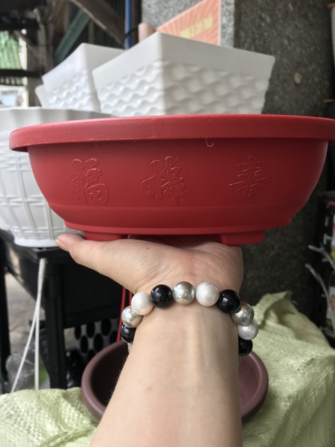 Chậu nhựa Bonsai trồng cây được đúc từ nhựa nguyên tốt. Chậu có vành cứng cáp, dễ di chuyểnKiểu dáng đơn giản có in Phúc Lộc Thọ
