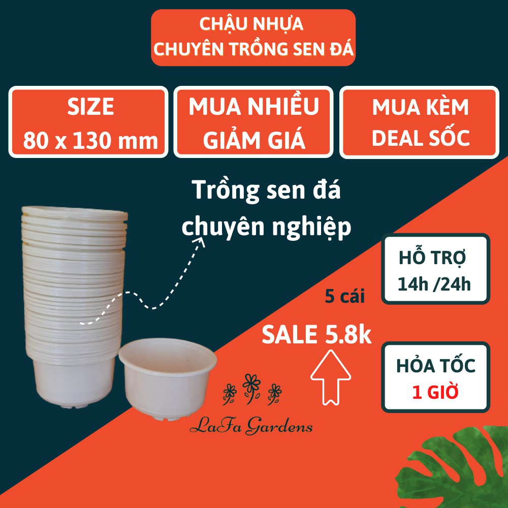 Nhà cửa & Đời sống > Làm vườn > Chậu cây || Chậu nhựa chuyên trồng cây sen đá thành thấp LAFA GARD 5 cái kích thước (80x130mm)Còn hàng