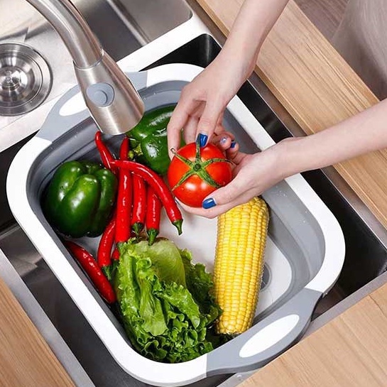 Chậu Rửa Gấp Đa Năng - Kiêm Thớt - Rổ Đựngkhông gian bếp chật hẹp hay những vật dụng bếp cồng kềnh