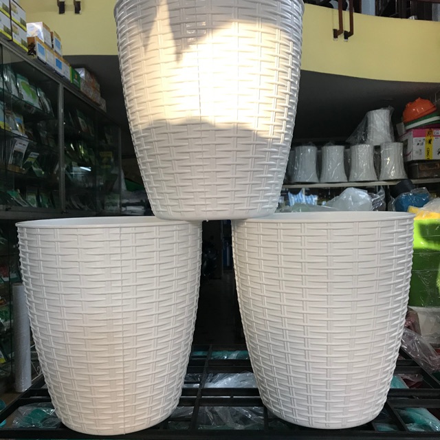Nhà cửa & Đời sống > Làm vườn > Chậu cây || Chậu nhựa Đan Mây trắng tròn size 28cmCòn hàng
