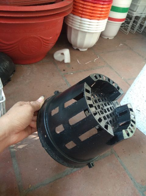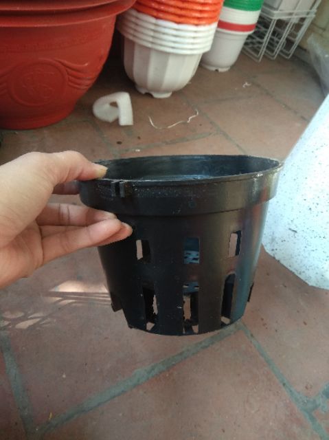 - Chậu nhựa trồng lan đã được thiết kế đục 3 lỗ sẵn và có thêm 2 gờ đối xứng để móc kẽm treo khi cần thiết rất tiện lợi.