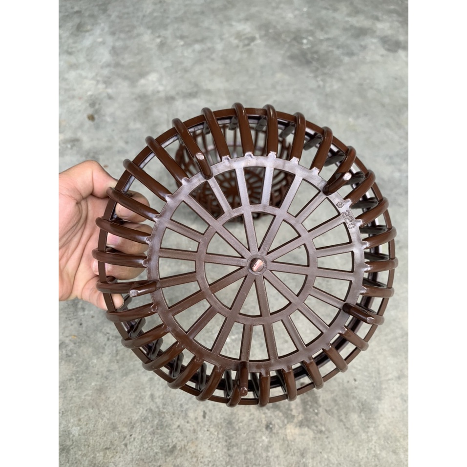 Chậu nhựa giả gỗ trồng lan hình quả bí màu nâu đủ size, hàng dày nan ạ