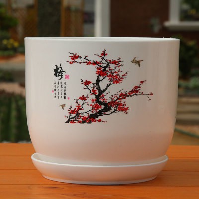 - Màu sắc: chậu màu trắng, trên chậu in hình bốn mùa: Xuân, Hạ, Thu, Đông