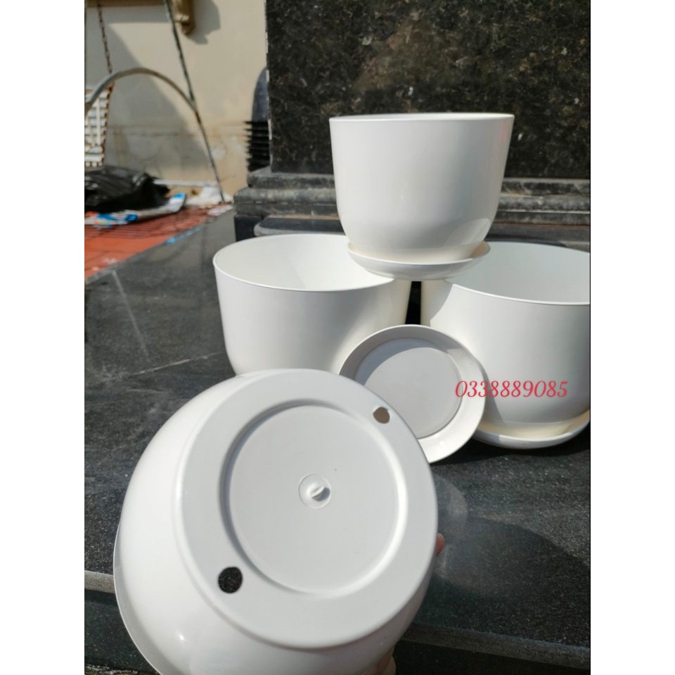 Chậu nhựa giả sứ TH kèm đĩa siêu xinhMô tả sản phẩm: