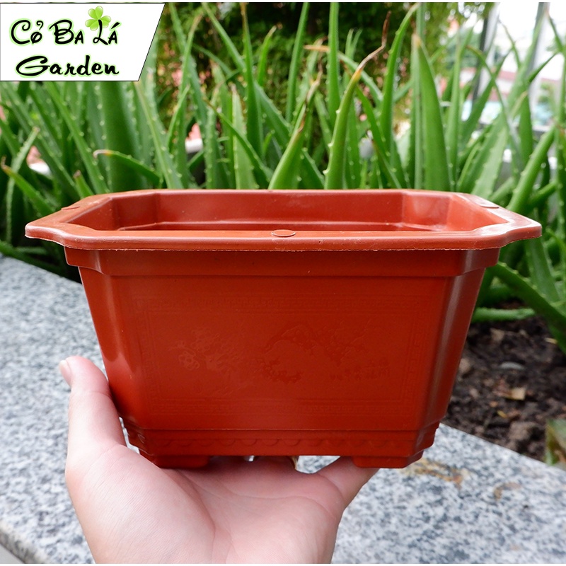 Chậu nhựa hình chữ nhật 19x14x10Chậu nhựa cứng, chắc chắn