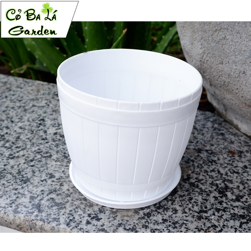 chậu nhựa tròn có đĩa lótcó kích thước là 13x10