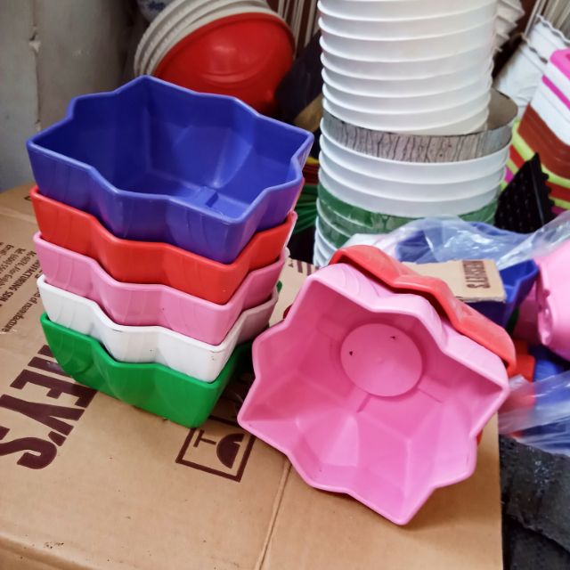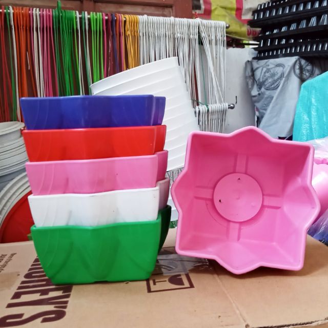- Chậu nhựa hình hoa có kiểu dáng hình bông hoa 9 cánh xinh xắn cùng với màu sắc tươi sáng. Góp phần tô điểm cho không gian nhà bạn thêm sinh động và tràn đầy sức sống.