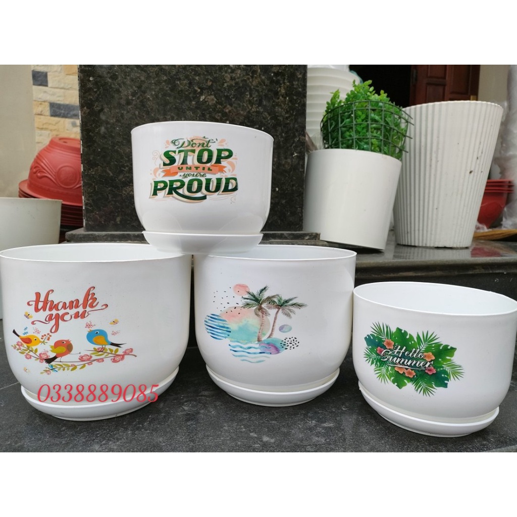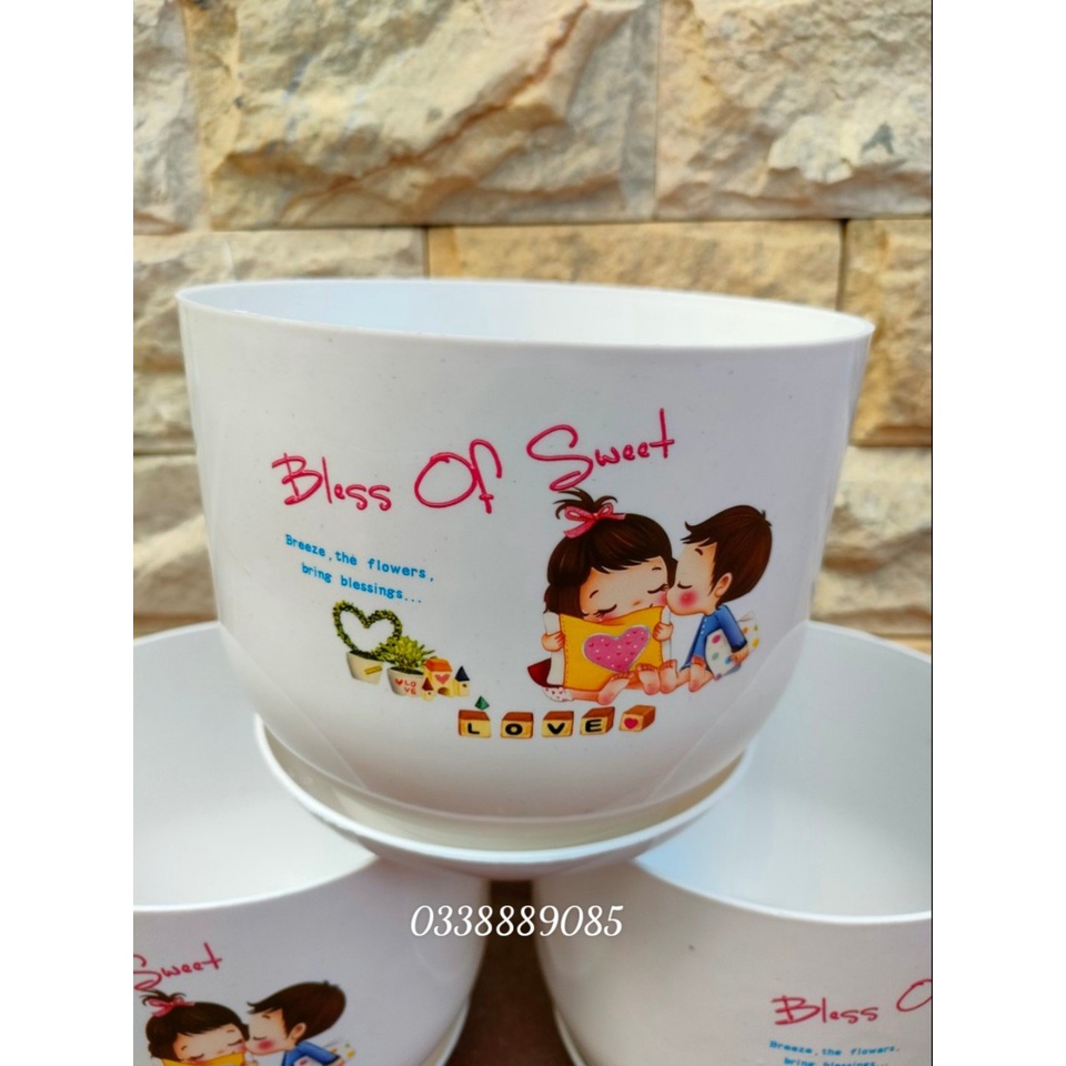 Nhà cửa & Đời sống > Làm vườn > Chậu cây || Chậu nhựa kèm đĩa giả sứ cao cấp Bloss Of Sweet trang trí, trồng cây cực xinhCòn hàng