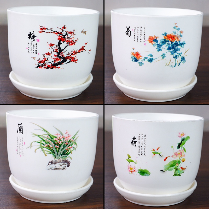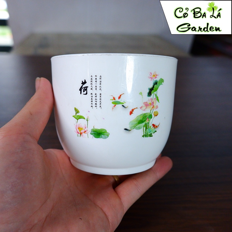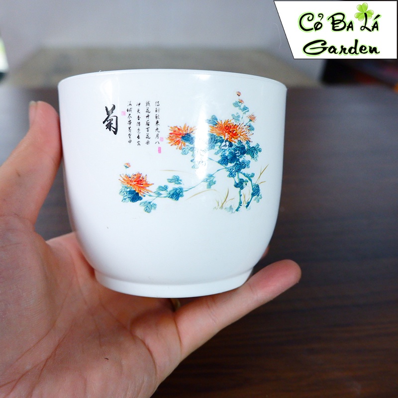 Chậu nhựa kèm đĩa giả sứ (KT 10x8,5)