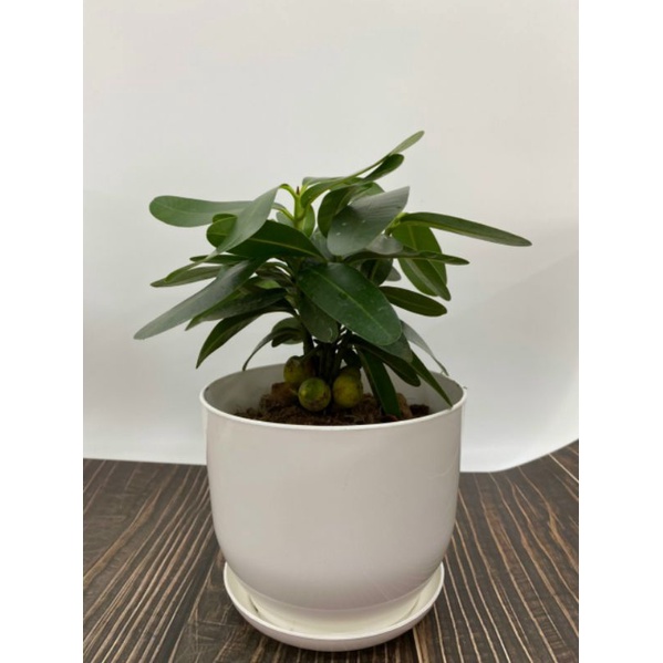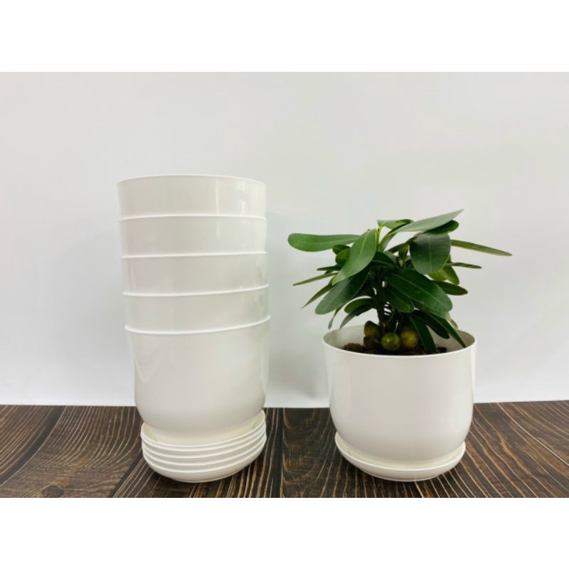 Chậu Nhựa Kèm Đĩa Trắng Trồng Cây Để Bàn