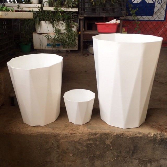 Chậu nhựa Kim cương trắng 21x24cm tráng men sứ bóng đẹp