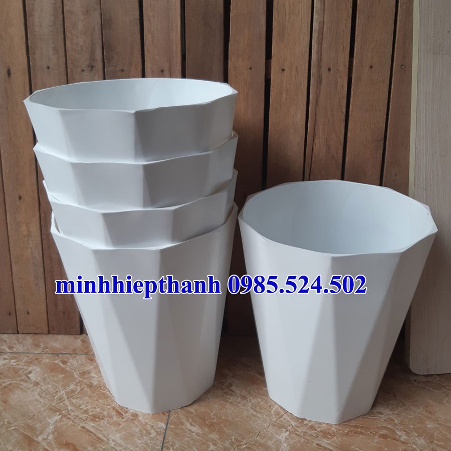 +Chậu làm bằng chất liệu nhựa cứng không đàn hồi+Thân chậu có hình thù tựa các mặt cắt của kim cương