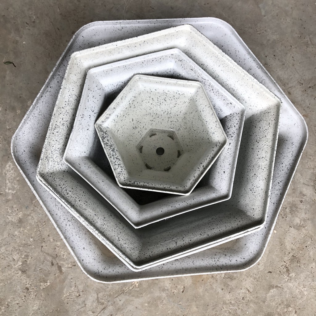 Chậu Nhựa Lục Giác Giả Đá Trắng (từ bé - to), chậu nhựa trồng cây sang đẹp