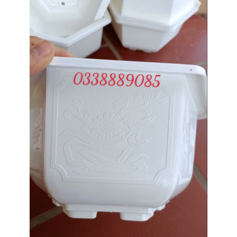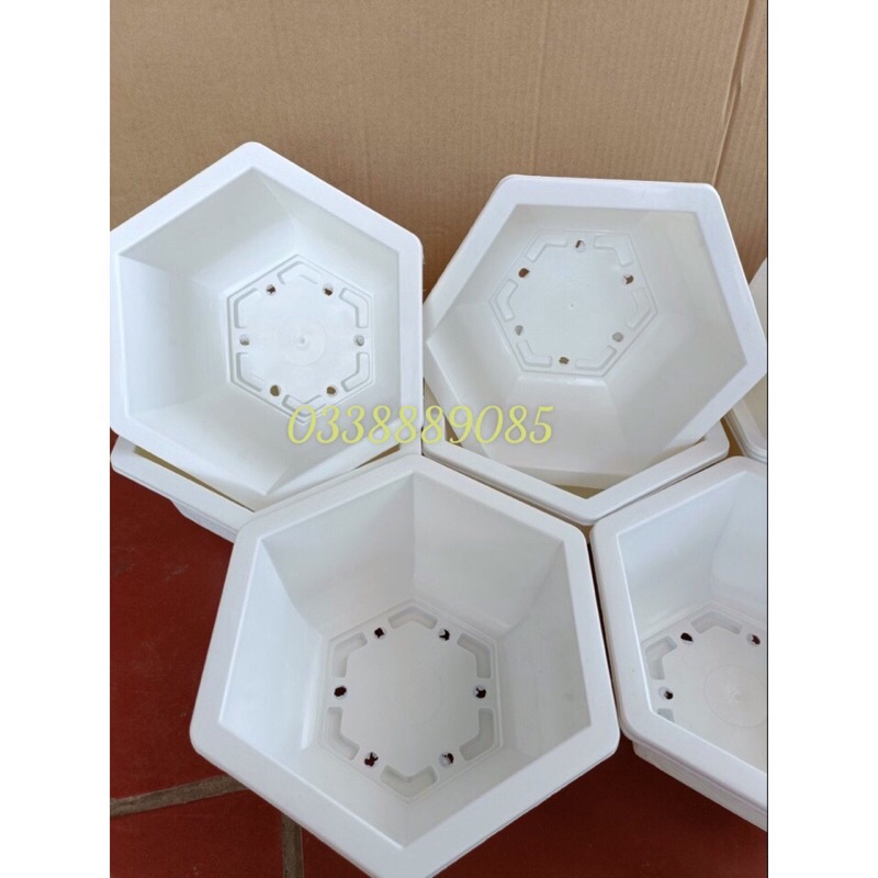 Chậu nhựa lục giác trồng cây bonsai màu trắng - chậu tứ quí hàng dày đẹp - ảnh thật