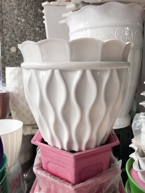 Chậu nhựa trồng cây giả sứ hoa văn mắc lướiLoại nhựa tốt, chậu đúc dày dặn. Nhìn không khác gì chậu sứ mà lại nhẹ nhàng khi di chuyển