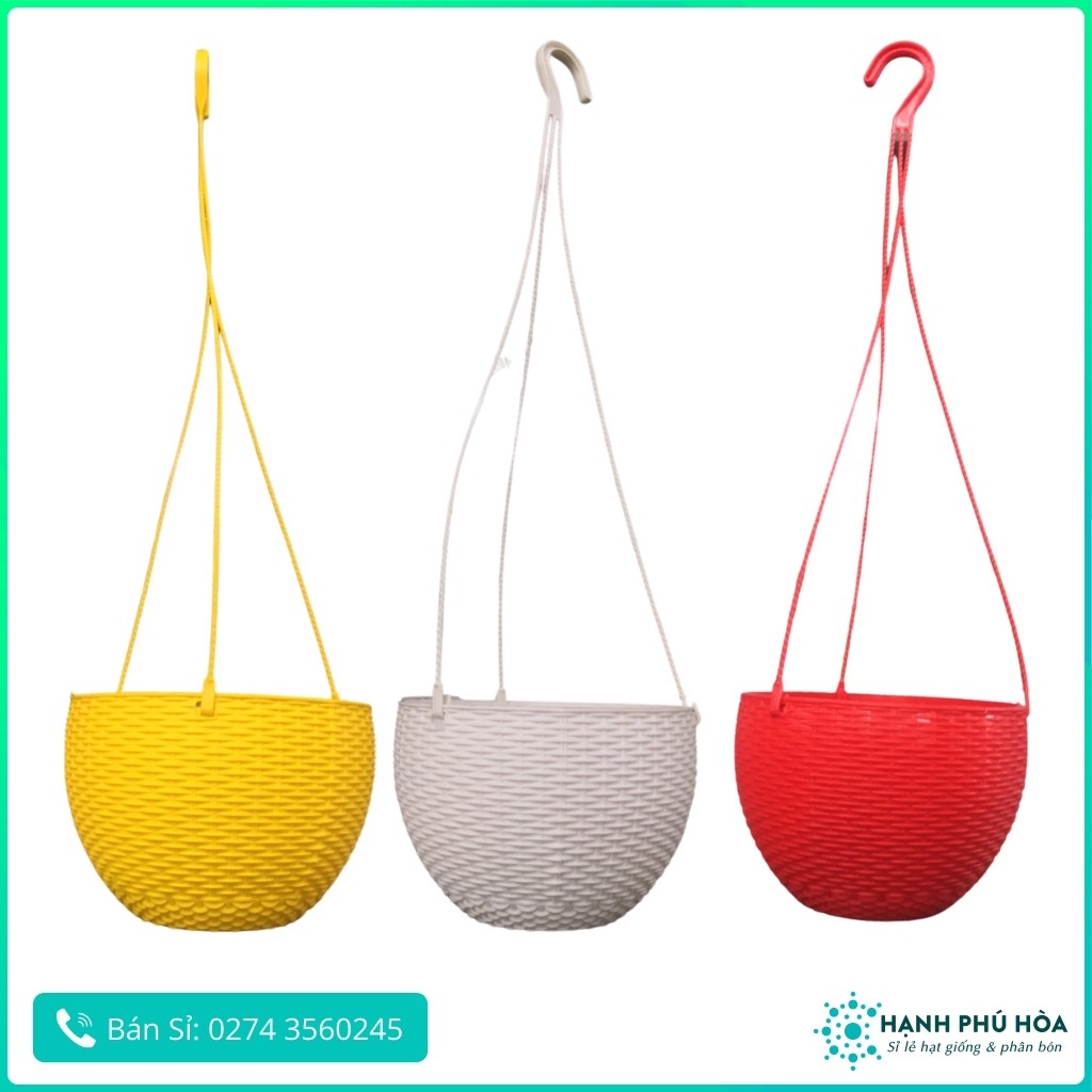 Nhà cửa & Đời sống > Làm vườn > Chậu cây || Chậu Nhựa Mây Tròn Có Quai Treo Dành Cho Hoa Kiểng, Hoa Dừa Cạn, Dạn Yến Thảo- Chậu Đẹp, Nhẹ, Bền, Có Lỗ Thoát NướcCòn hàng