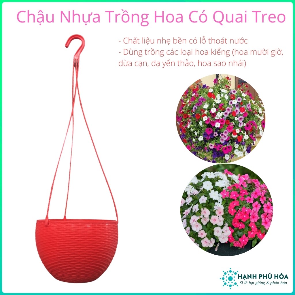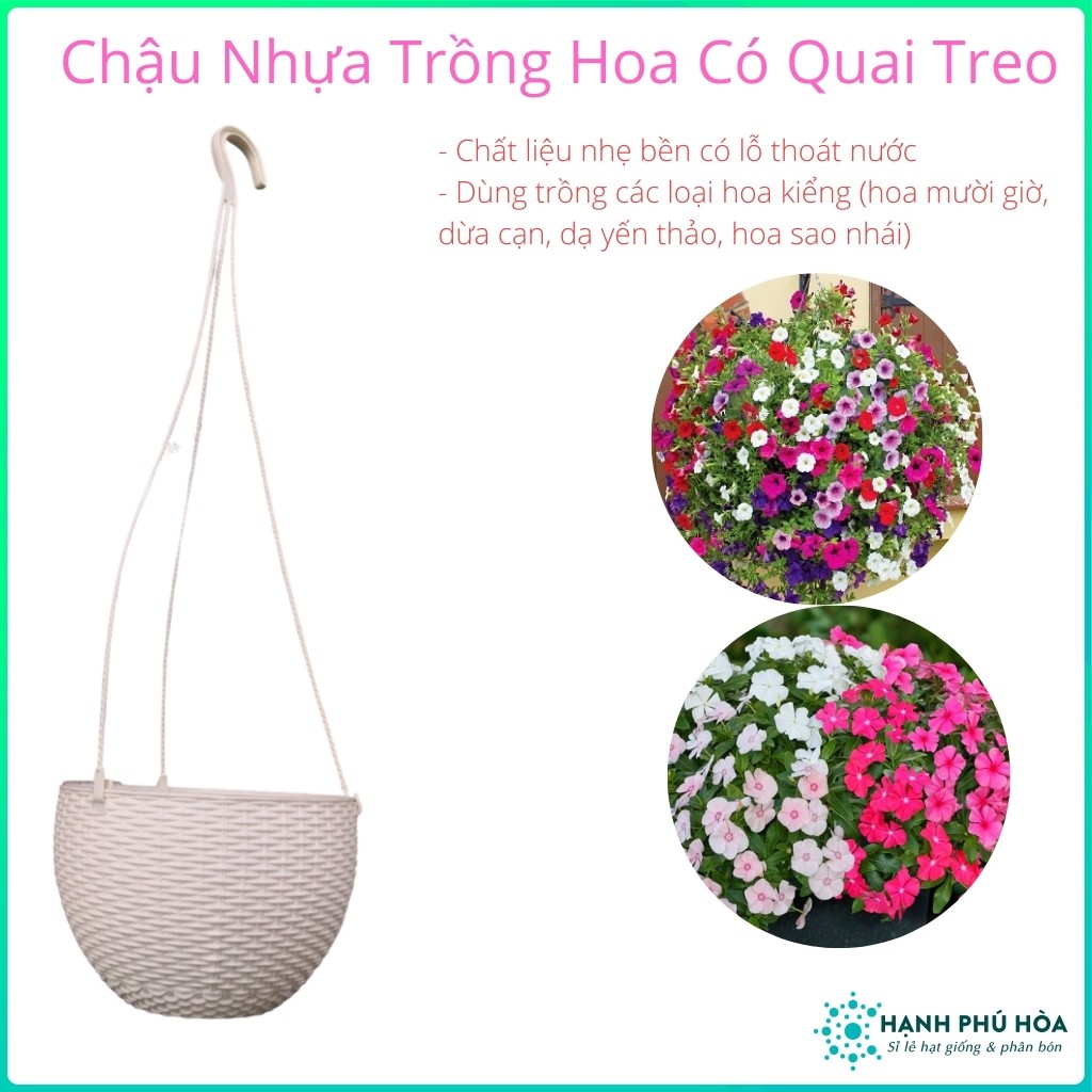 Giới thiệu Chậu Nhựa Mây Tròn Có Quai Treo Dành Cho Hoa Kiểng, Hoa Dừa Cạn, Dạn Yến Thảo- Chậu Đẹp, Nhẹ, Bền, Có Lỗ Thoát Nước