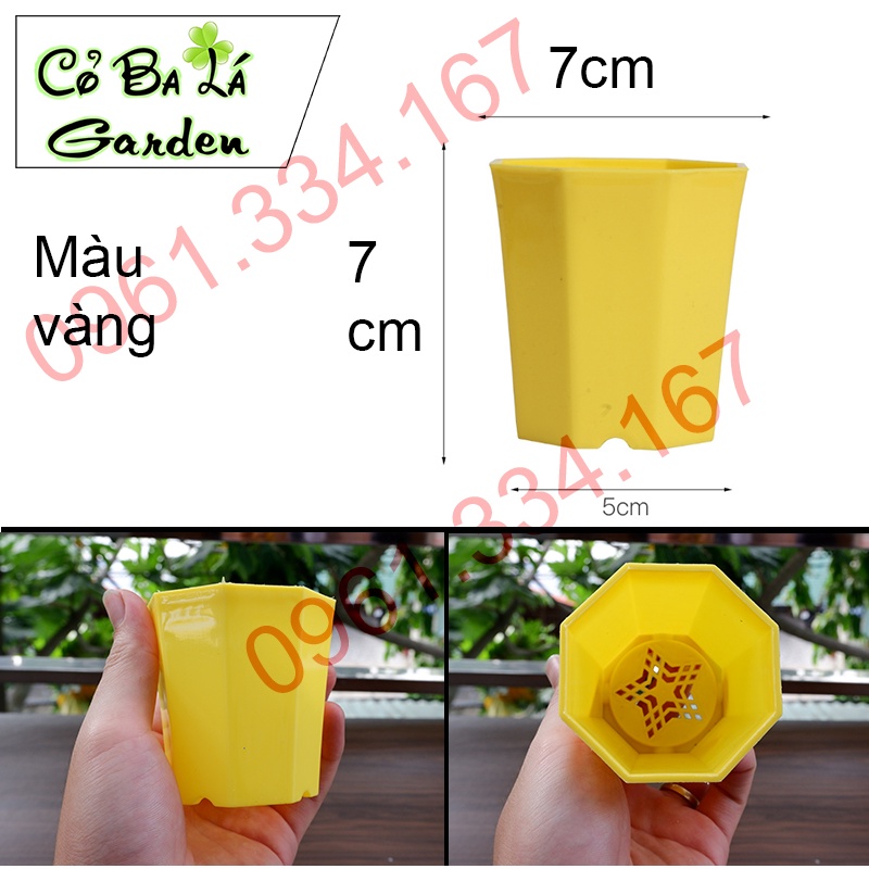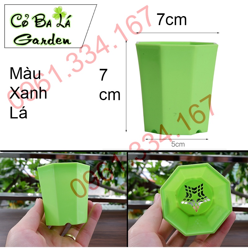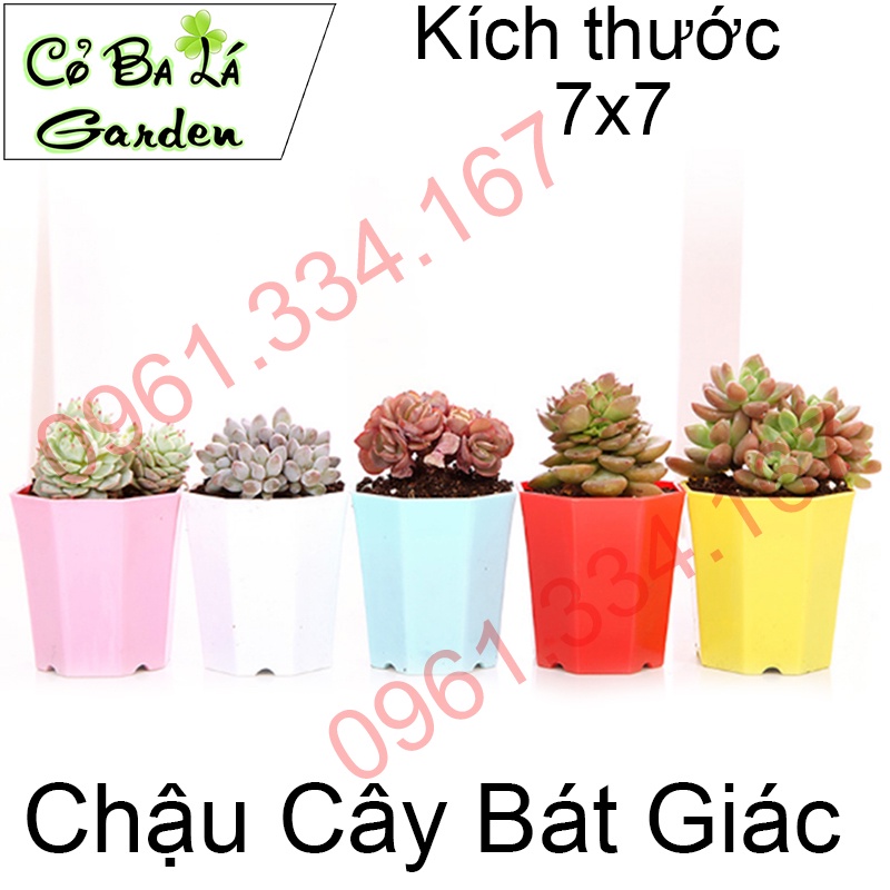 Chậu nhựa mini hình bát giác, nhựa cứng, nhiều màuKích thước chậu nhựa 7x7 phù hợp trồng cây sen đá , xương rồng hoặc các cây mini sẽ phù hợp hơn