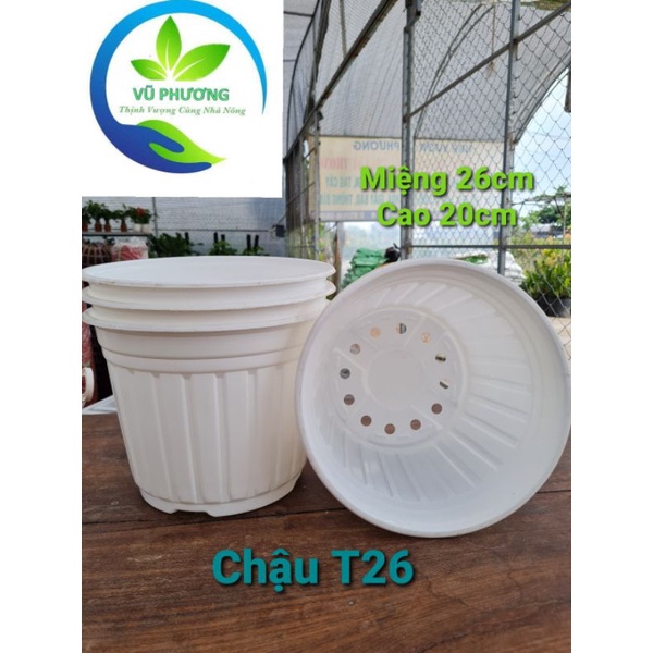 Chậu nhựa mỏng thích hợp trồng mọi loại cây T26 kích thước miệng 26cm cao 20cm