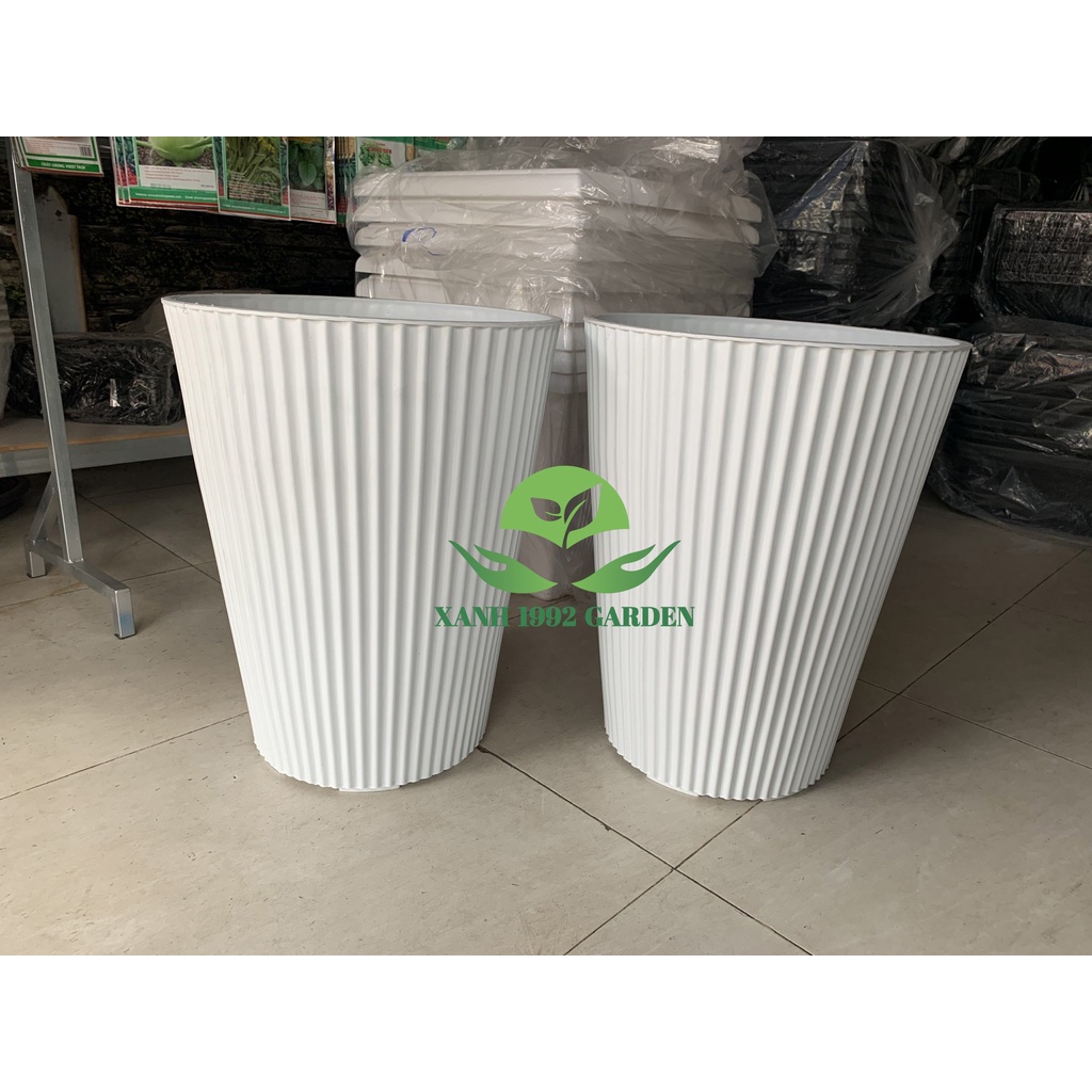 Chậu nhựa sọc gân tròn cao, chậu trồng cây cao cấp CỠ LỚNChất Liệu: