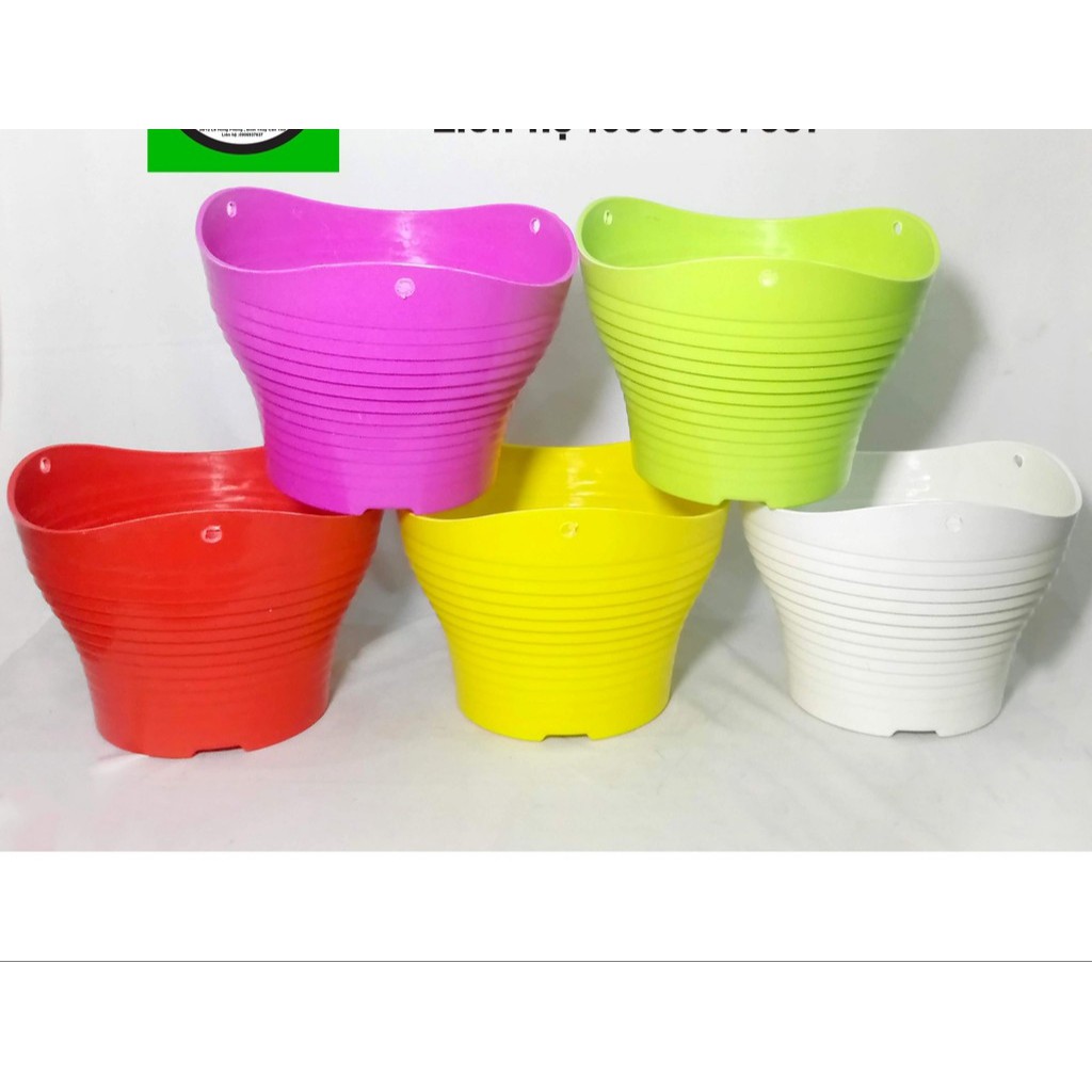 Chậu Nhựa Sóng Dây Treo Xích Rộng 21cm Nhiều Màu Đẹp Chậu Treo Sóng