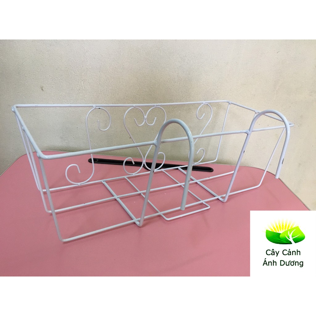 Giá treo cùng kích thước, dạng móc để móc vào lan can ban công, phù hợp các lan can dạng tròn, vuông đường kính 8cm trở lại. Giá treo được sơn trắng chống gỉ, hoa văn đẹp mắt, chắc chắn, độ bền cao.