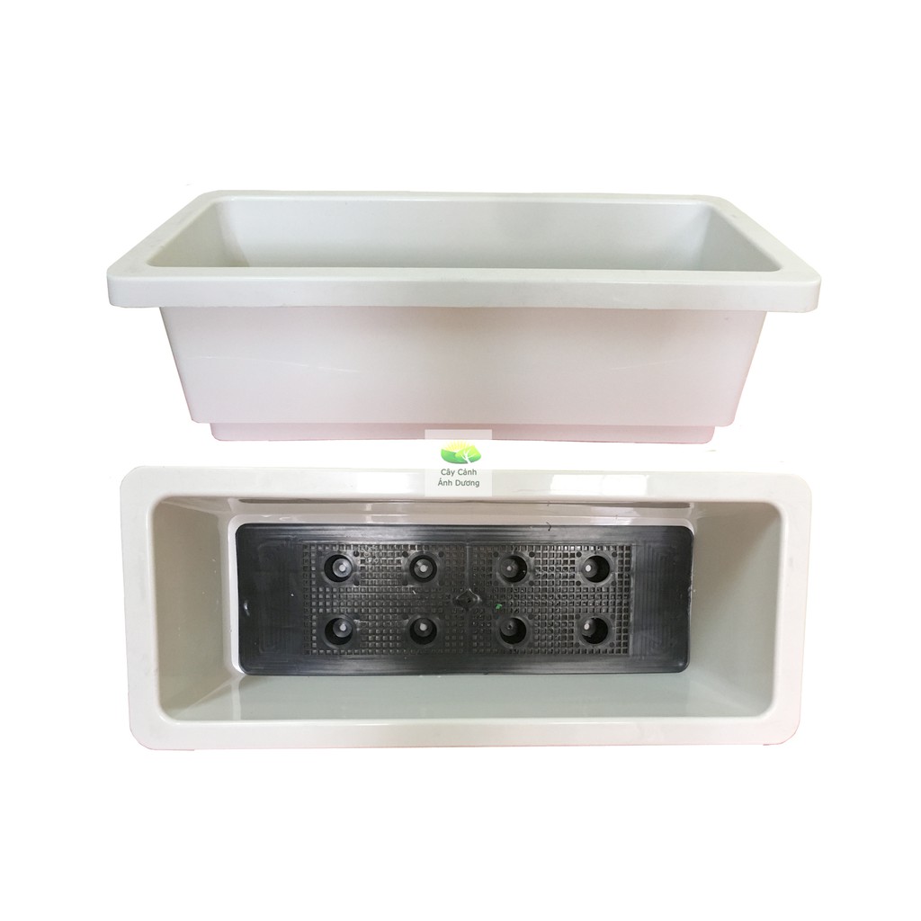 Chậu nhựa thông minh trồng rau, trồng hoa, hình chữ nhật, giá treo chậu kích thước 48x20x16cm