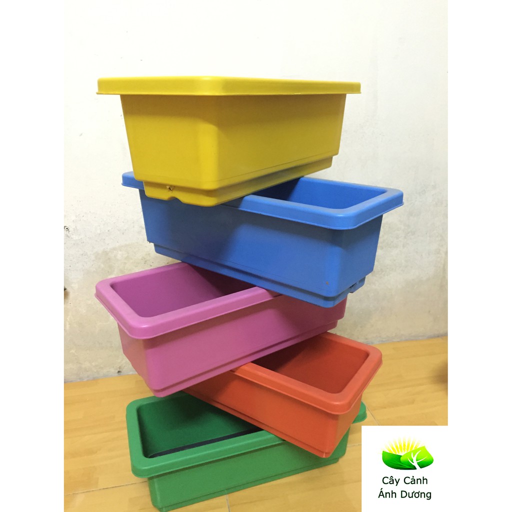 (Các bạn mua cả chậu và giá treo hãy tìm combo chậu và giá treo nhé)Chậu nhựa dài thông minh có lớp màng đáy thoát nước tốt và giúp đất tơi xốp, đồng thời trữ nước thừa giúp cây tự hút nước khi cần và giảm thời gian tưới cho cây. Chậu có nhiều màu, các bạn đặt hàng chỉ cần viết ở mục lưu ý màu cần mua, shop sẽ gửi đúng yêu cầu ạ.