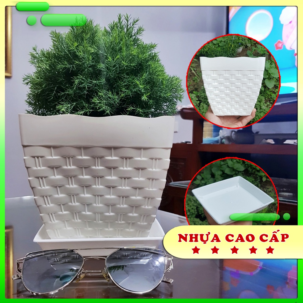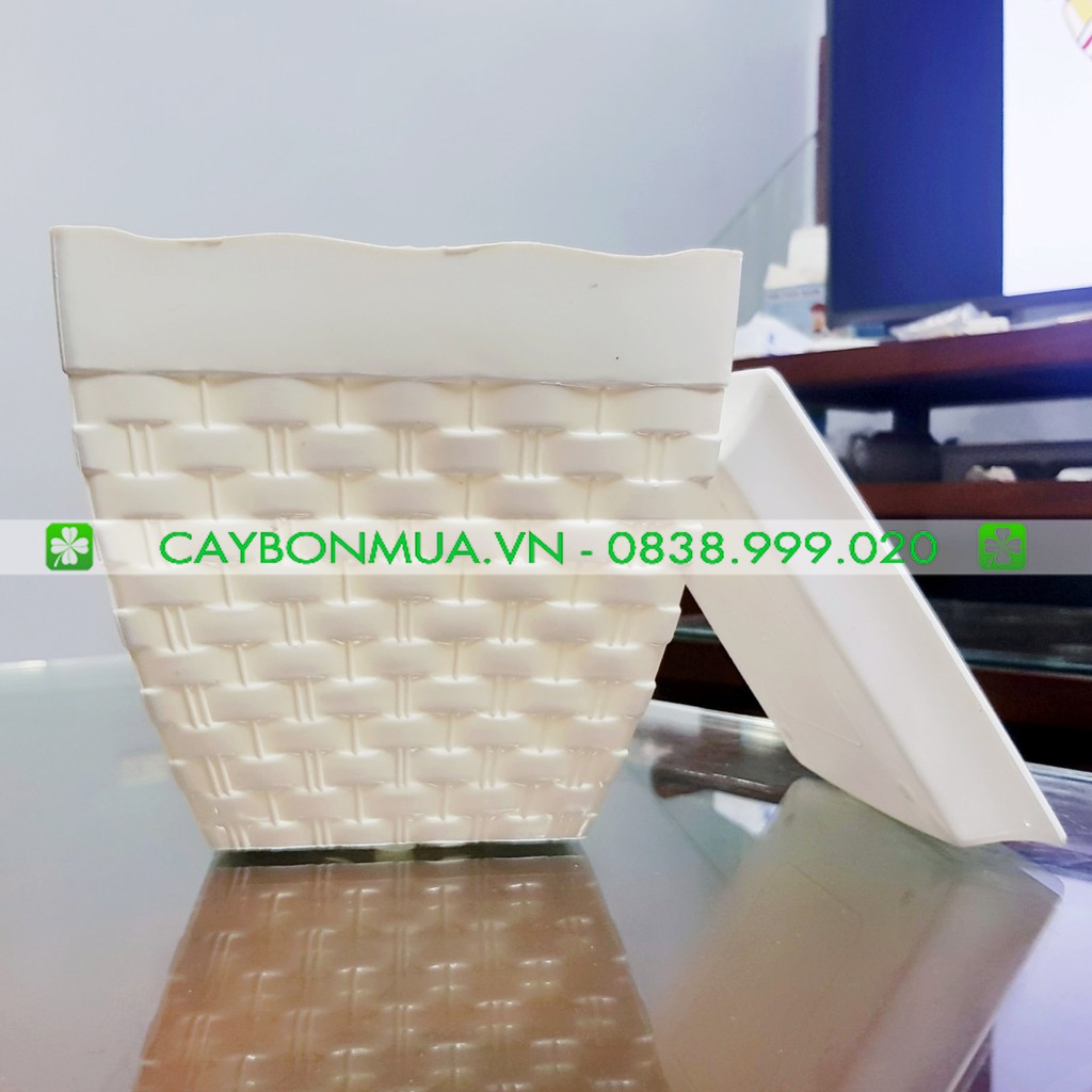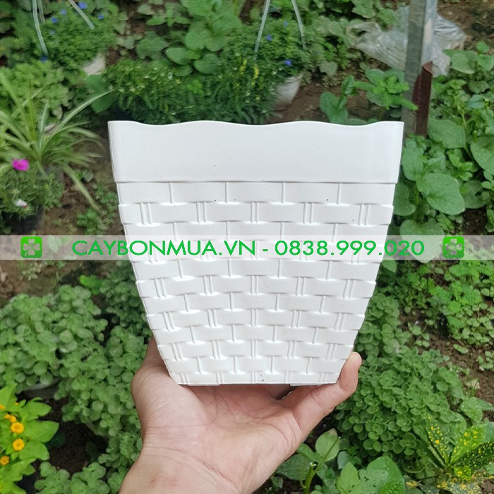 Nhà cửa & Đời sống > Làm vườn > Chậu cây || Chậu nhựa trắng cao cấp - chậu loại dày - chậu nhựa với họa tiết mây đanCòn hàng