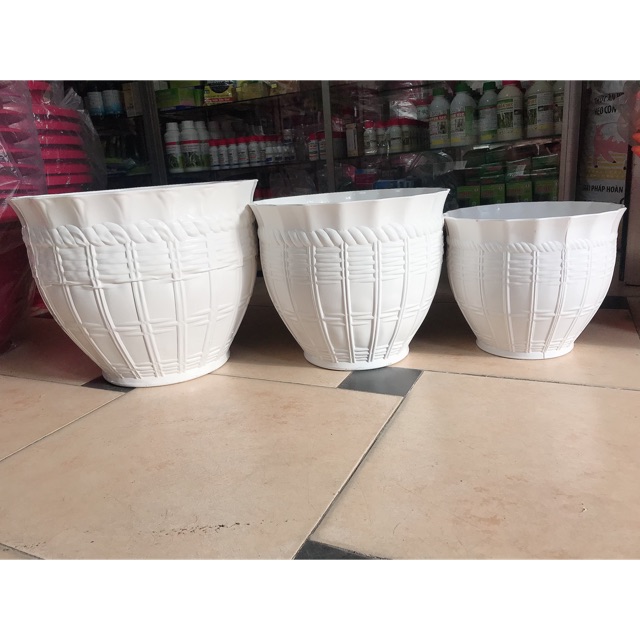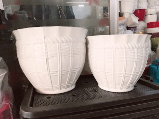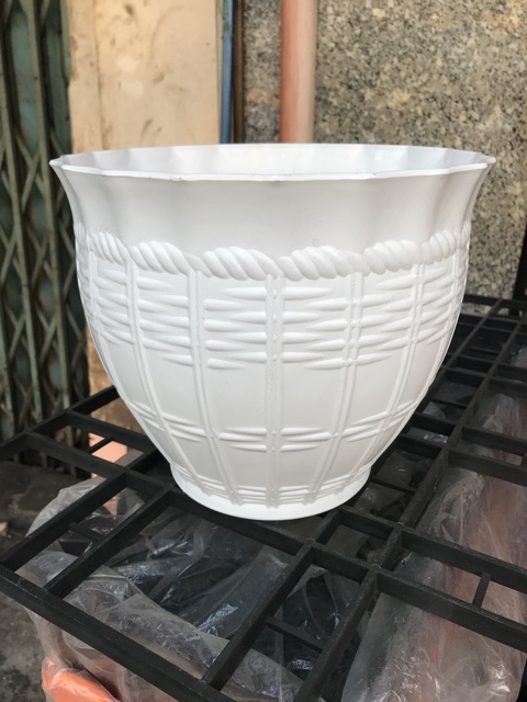 Chậu nhựa trắng Đan Mây Bầu - size 31 cm