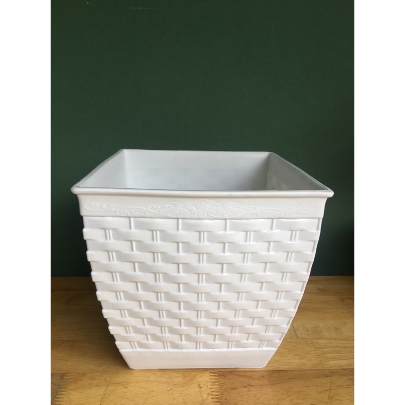 Bộ Chậu Nhựa Trắng Để Bàn Hình Vuông Kiểu Dáng Mây Đan - Trồng Hoa Kiểng Tuyệt Đẹp