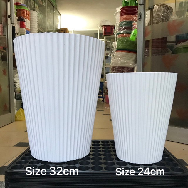 Nhà cửa & Đời sống > Làm vườn > Chậu cây || Chậu nhựa trắng gân sọc - size 24cm kèm dĩaCòn hàng