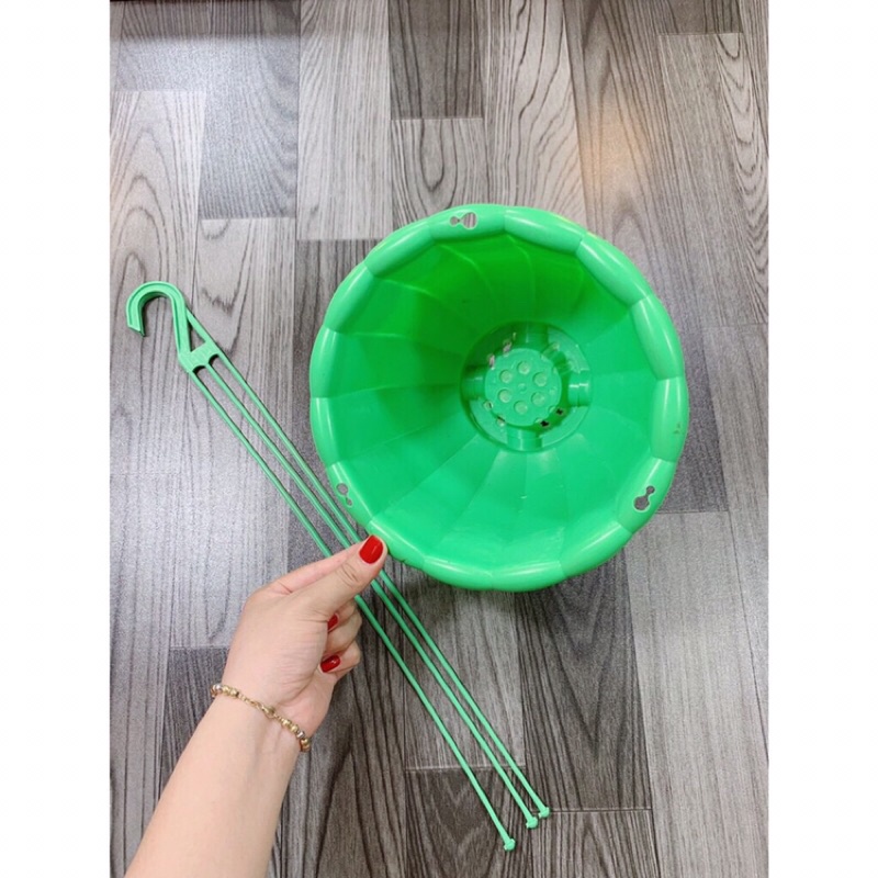 Chậu nhựa được sản xuất tại Việt Nam bằng nhựa dẻo với đủ các màu sắc cho bạn chọn,chậu có lỗ thoát nước ,có móc treo xinh xắn