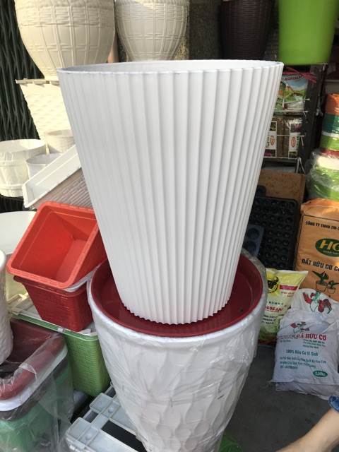 Nhà cửa & Đời sống > Làm vườn > Chậu cây || Chậu nhựa tròn cao Gân Sọc - size 32 cm ( có dĩa lót chậu )Còn hàng