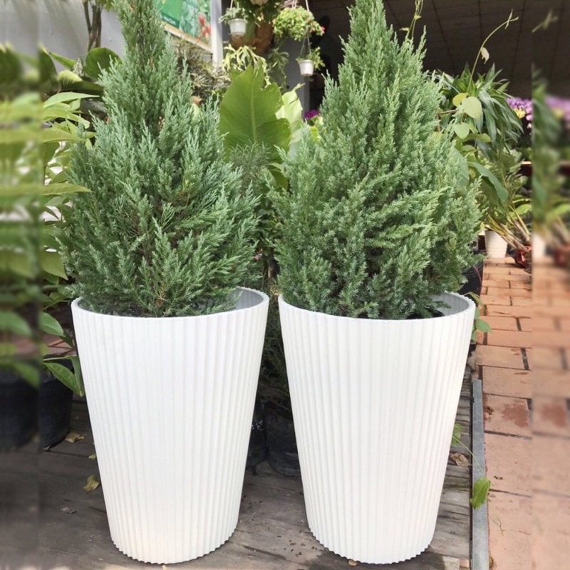 Chậu nhựa tròn cao kiểu dáng gân sọc nổi, đơn giản nhưng đẹp mắt, lại dang trọng. Phù hợp với rất nhiều loại cây có chiều cao tương đối cao một chútLoại nhựa tốt, dày dặn nhưng cằm nhẹ tay
