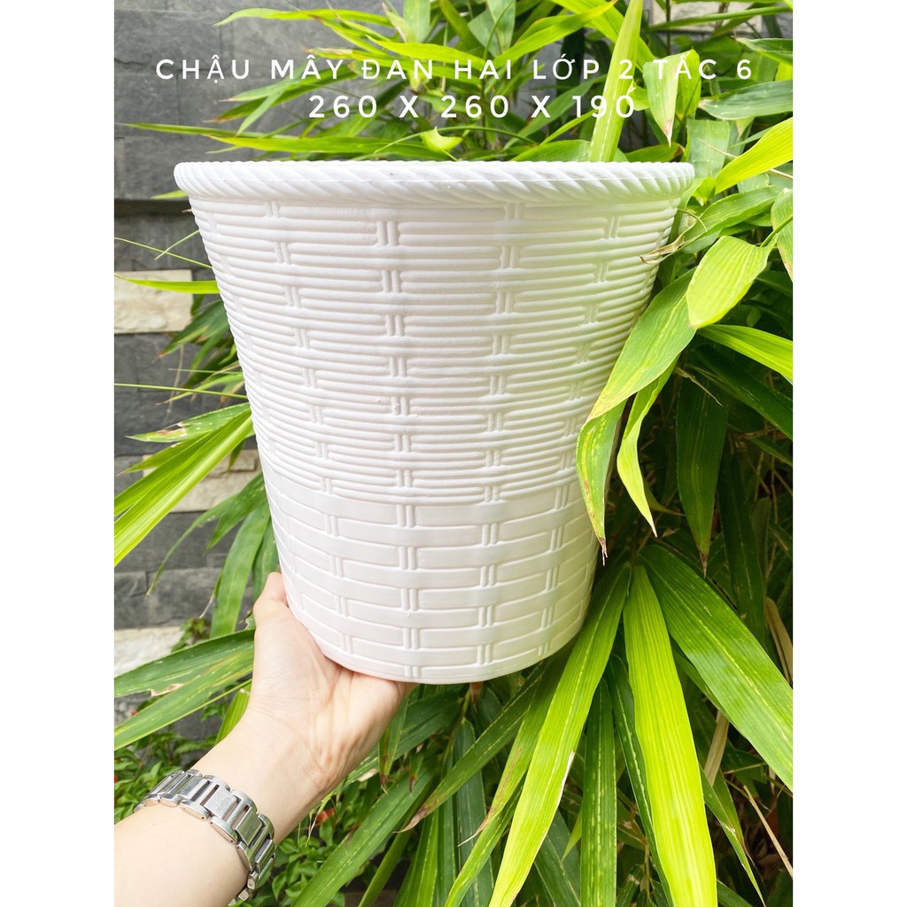 Nhà cửa & Đời sống > Làm vườn > Chậu cây || Chậu nhựa tròn đan mây 2 lớp 26cm loại 1 hàng đẹp_Chậu nhựa cao cấp mây đan tròn T26Còn hàng