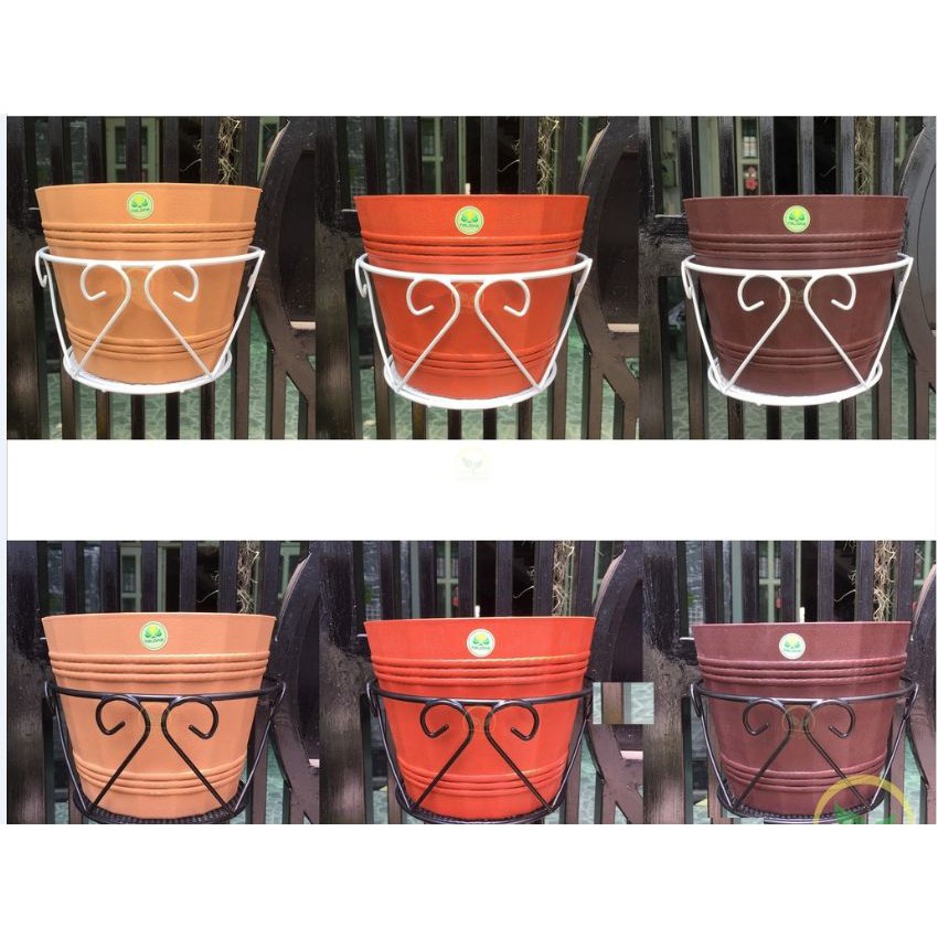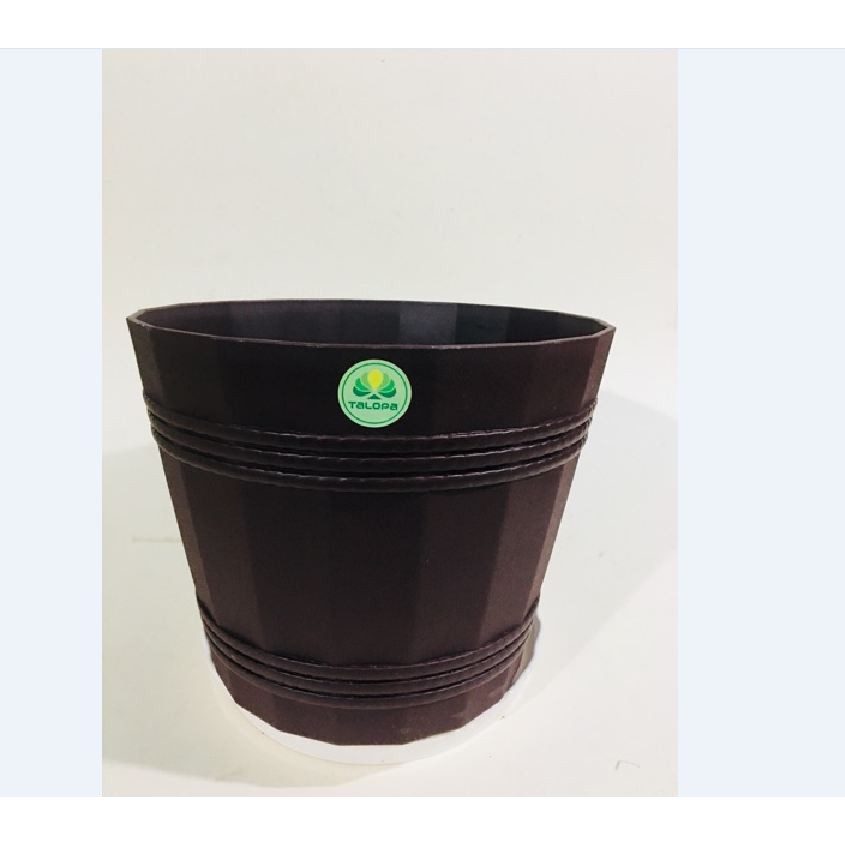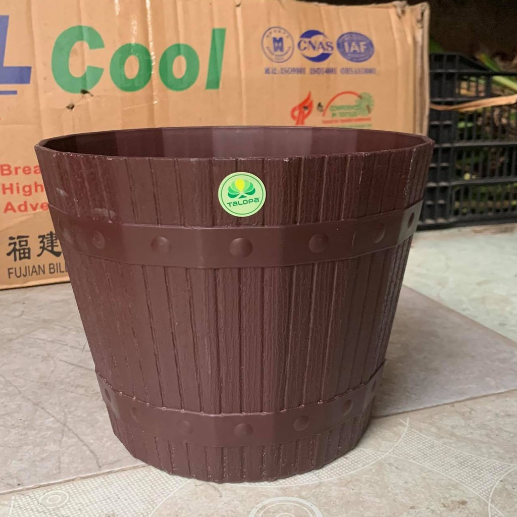 Nhà cửa & Đời sống > Làm vườn > Chậu cây || Chậu Nhựa Tròn Kiểu Dáng Thùng Gỗ, Chậu Để Bàn nâu đen (22x22x17cm)Còn hàng