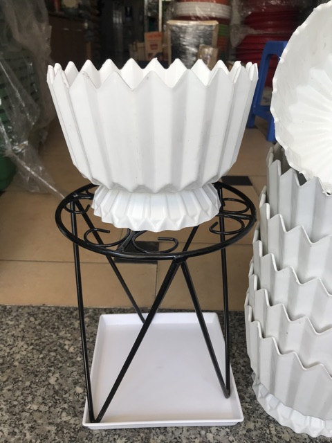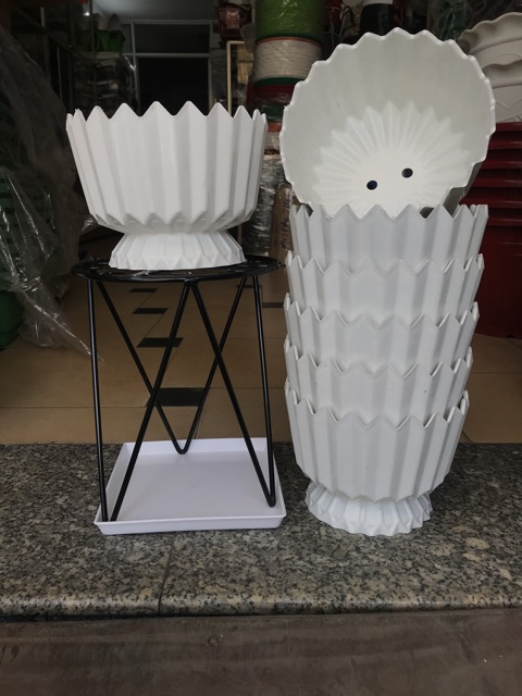 Chậu nhựa tròn kiểu dáng ly chân lùn miệng chậu khắc khíaĐường kính chậu 20 cm