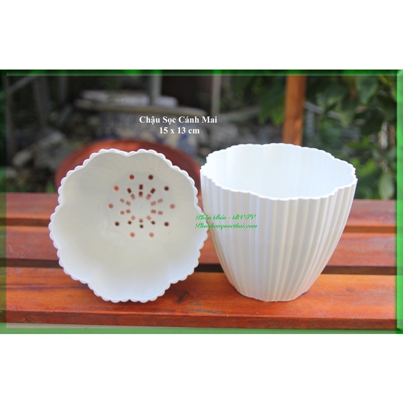 CHẬU NHỰA TRÒN SỌC CÁNH HOA MAI TRỒNG CÂY – KÍCH THƯỚC 15 * 13 CM