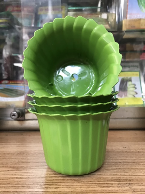 Chậu nhựa tròn xếp để bàn dễ thươngCó 3 màu như hình: xanh lá, đỏ đô, trắng