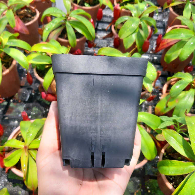 Kích thước chậu vuông 9x9cm chiều cao10cm.Châu đươc làm từ chất liệu nhựa PP nên bền bỉ qua năm tháng; có màu đen nên không bị ố màu hay dơ. Với kích thước vuông vức dễ dạng xếp các chậu cạnh nhau, tiết kiệm nhiều diện tích, phần đáy chậu cũng có nhiều lỗ giúp thoát nước dễ dàng cây không bị úng.