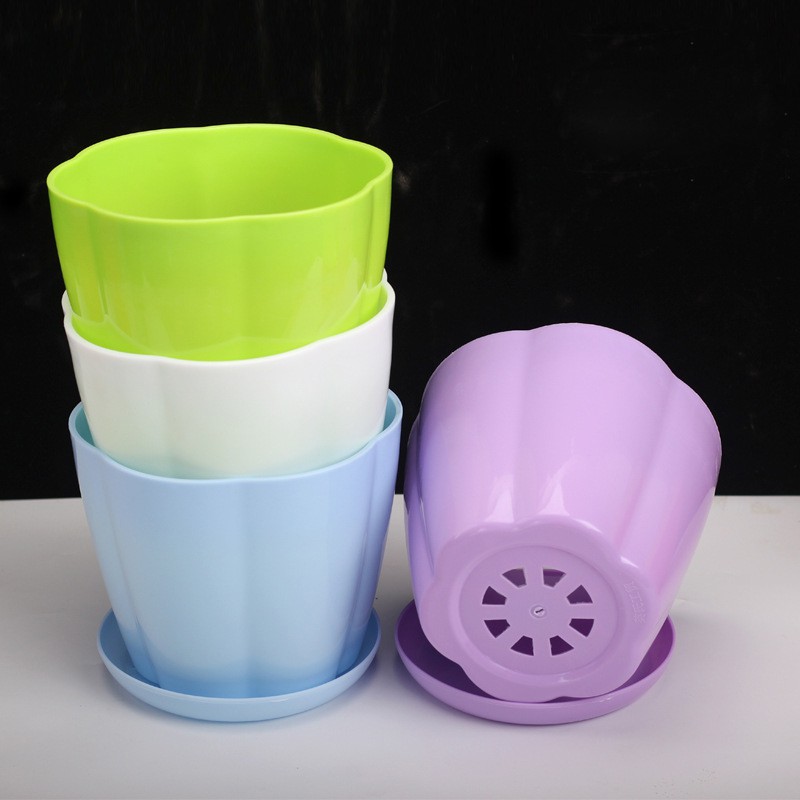 Giới thiệu Chậu nhựa trồng cây, chậu vành hình cánh hoa, chậu cây nhiều cỡ và màu sắc đa dạng